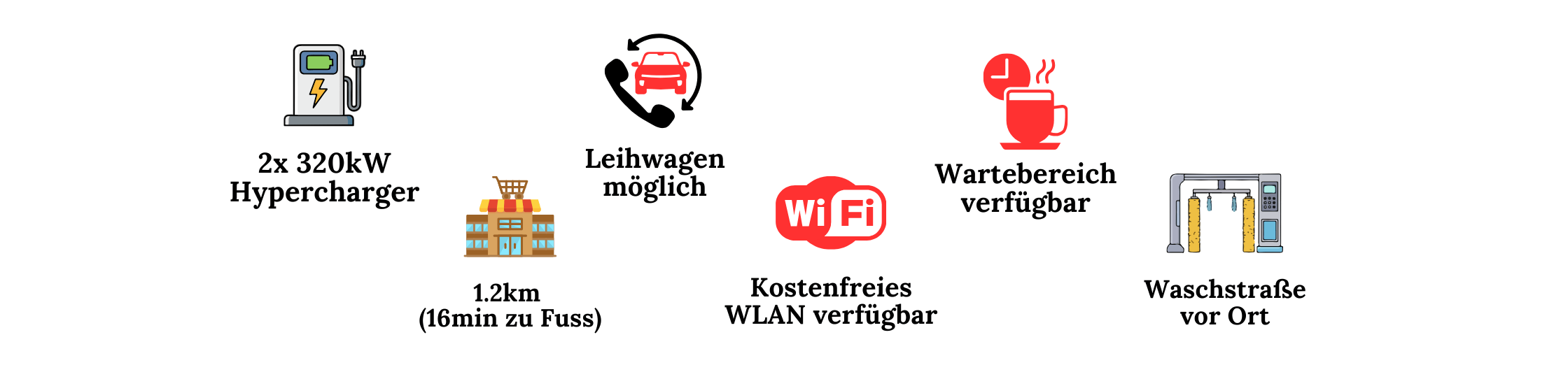 Ja, Hypercarger bis 320 kW auf dem Gelände.